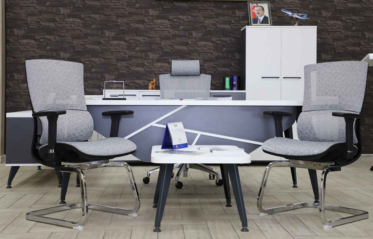 VIP rəhbər dəstləri, menecer və işçi masaları, toplantı masaları və hər növ ofis kresloları.